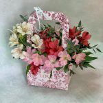 Альстромерия – 8 шт.Эвкалипт – 2 шт.Оазис флористический – 1 шт.Сумка картон – 1 шт.