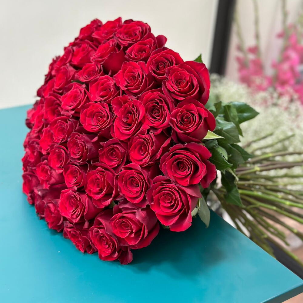 101 красная роза 50 см в букете