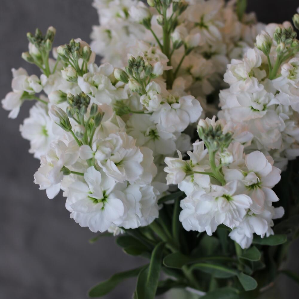 Букет из белой маттиолы и эвкалипта