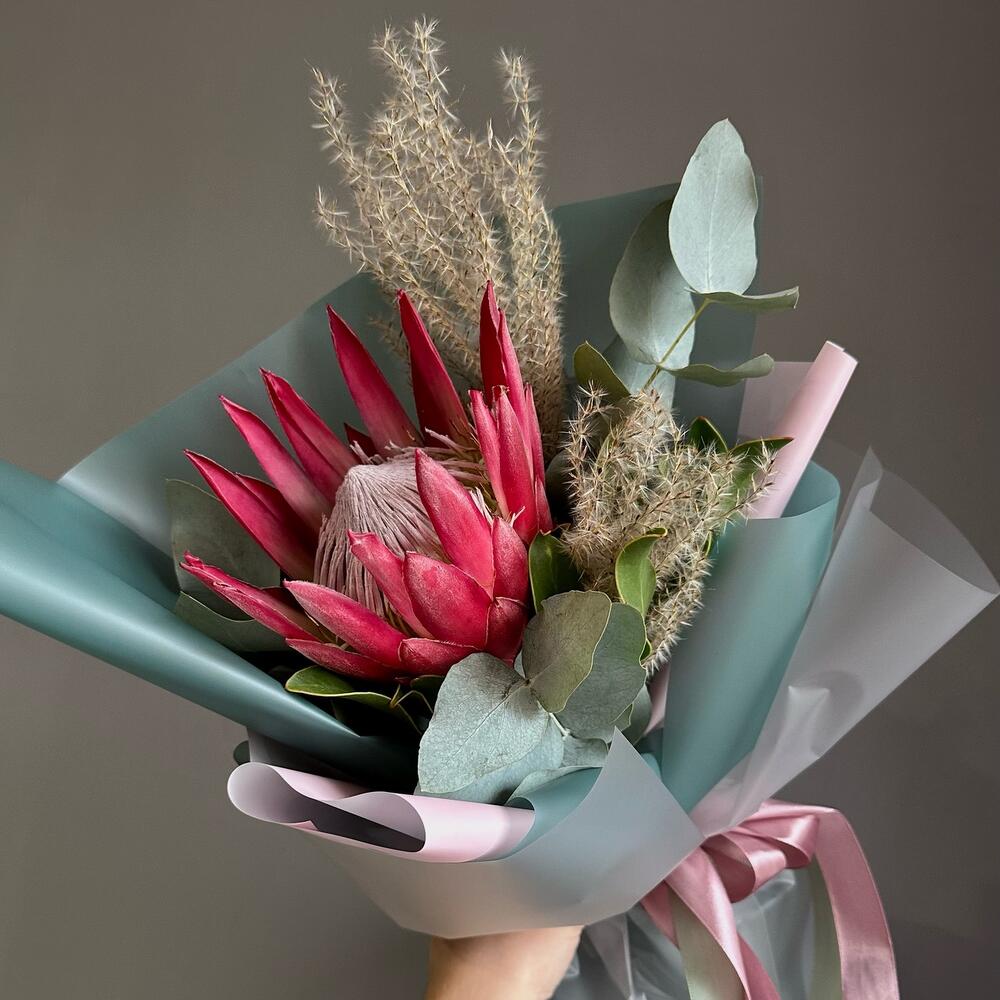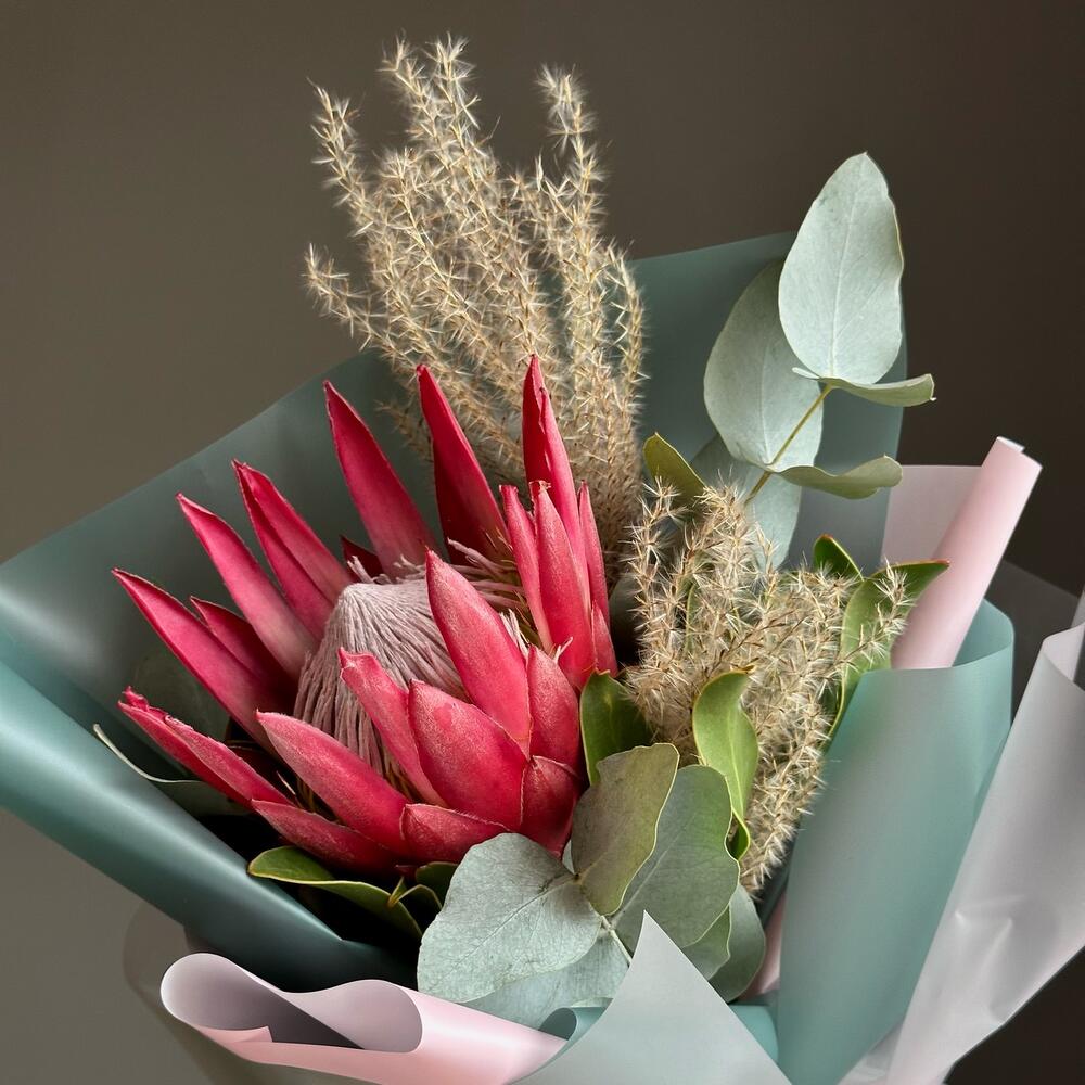 Протея – 1 шт. Эвкалипт – 1 шт. мискантус – 2 шт.
