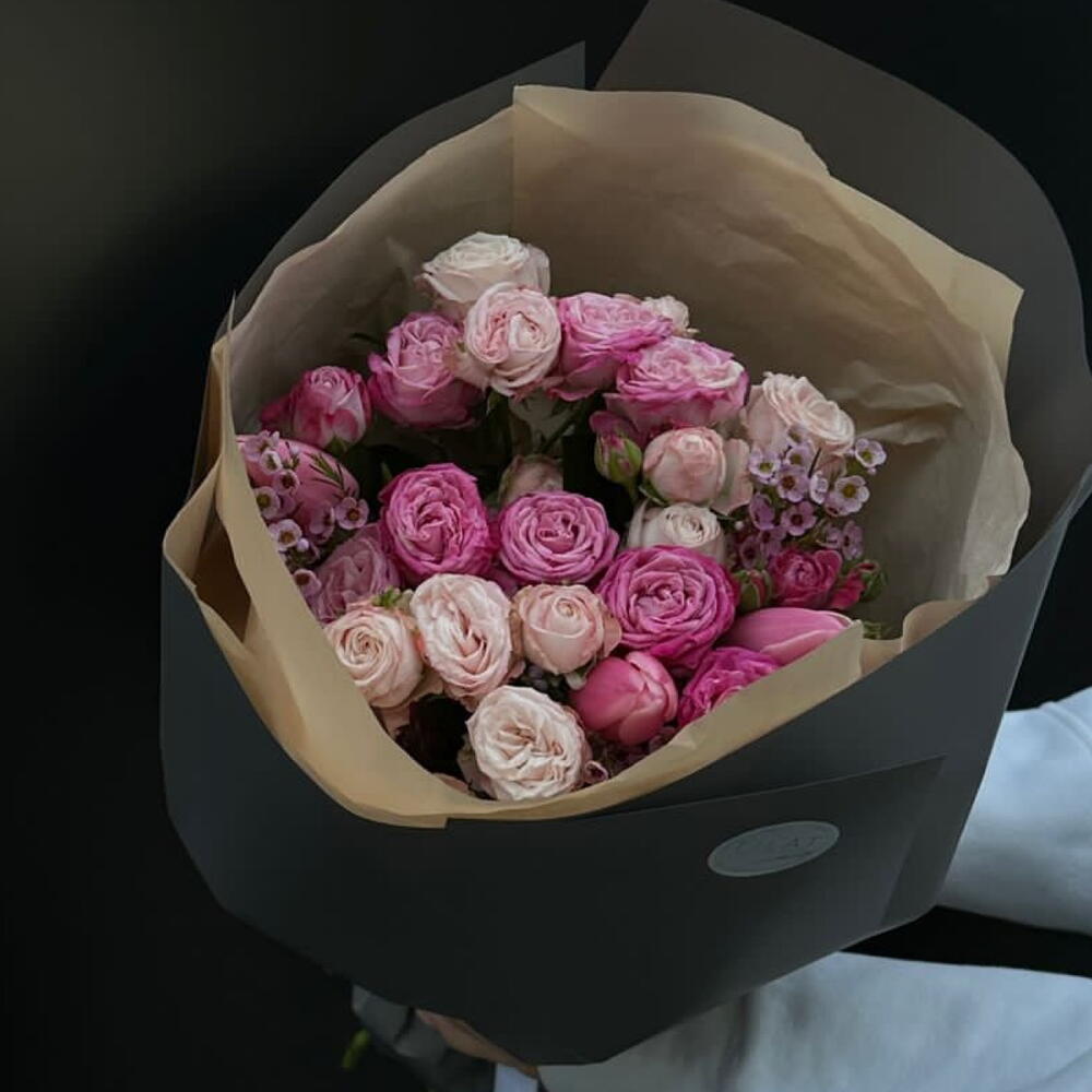 15 пионовидных кустовых роз Роял трендсеттер. Букет 310 Kimbirly Flowers