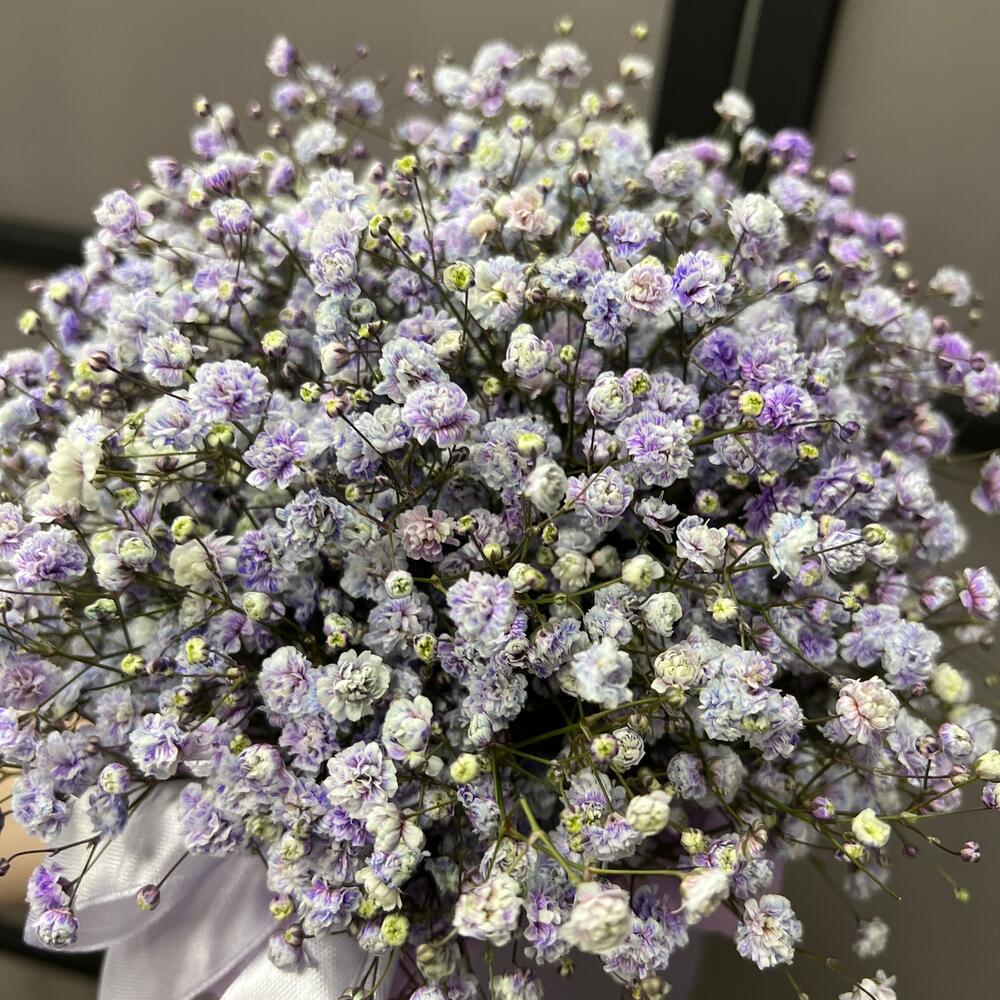 «Лавандовое созвездие» Букет из розы, гвоздики, статица и хлопка