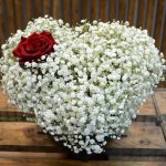 Букет гипсофилы в шляпной коробке в виде сердца
