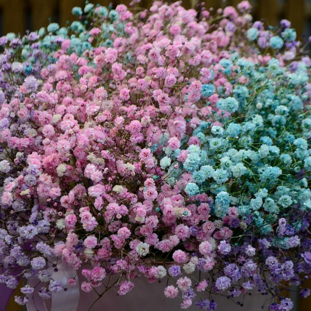 Букет из 15 веточек разноцветной гипсофилы в коробке