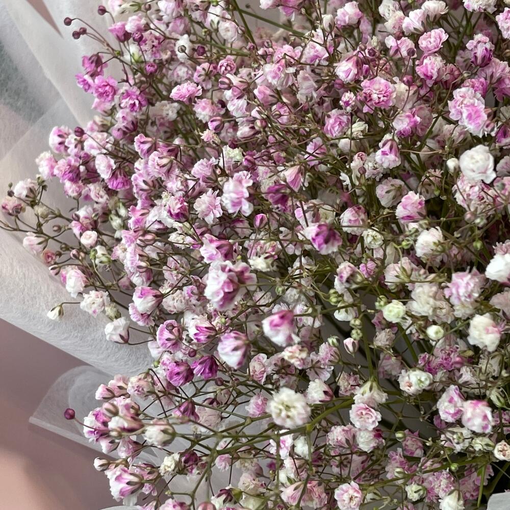 Гипсофила – 5 шт.Лента – 2 шт.Упаковка дизайнерская – 2 шт.