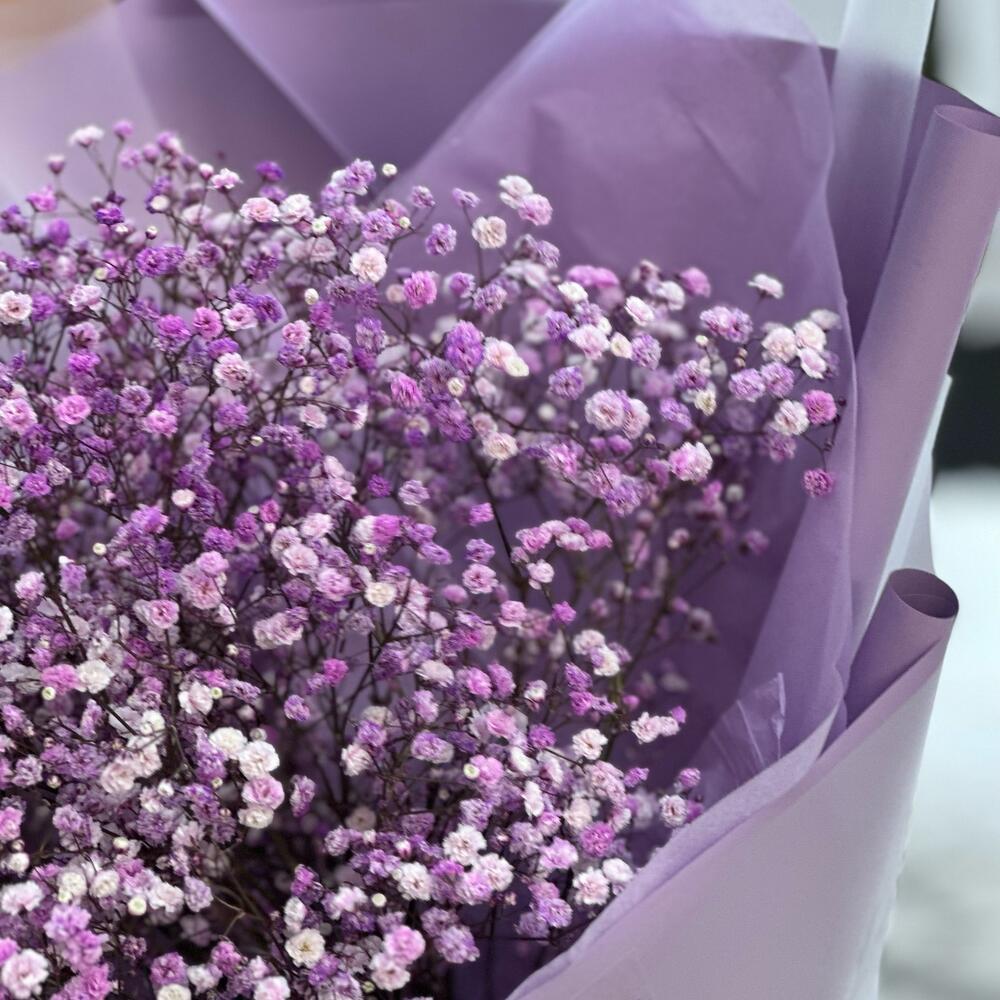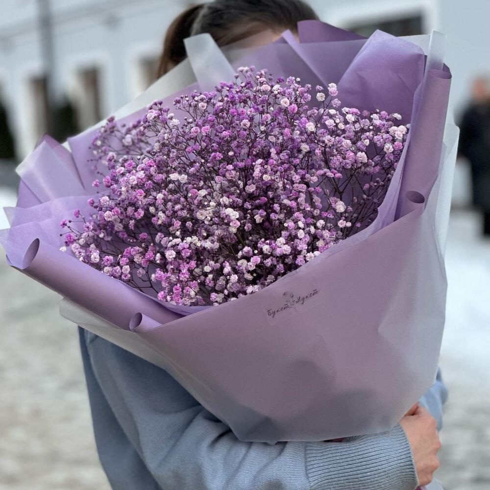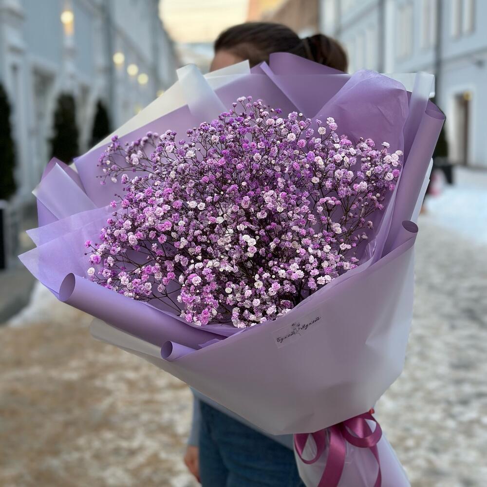 Один из самых стойких цветов – гипсофила – символизирует чистоту сердца, невинность, легкость, счастье и искренность.Сиреневая гипсофила символизирует благородство и красоту.Мы создали огромный и воздушный букет, чтобы вы могли впечатлить близких своим вниманием.Важно: … Показать ещёоттенок гипсофилы может немного меняться от холодного к теплому, от яркого к более светлому.