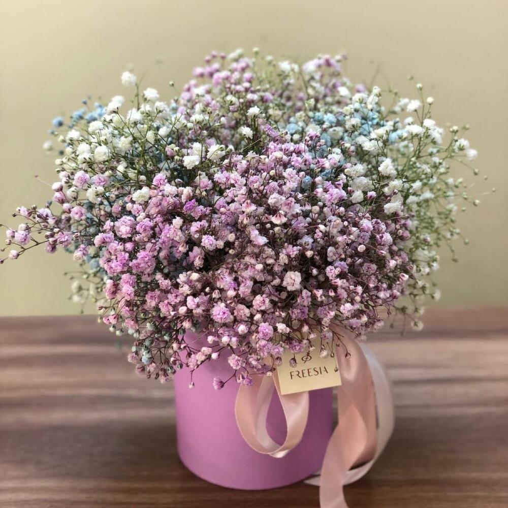 Нежная милая коробочка с гипсофилой подарит яркие эмоции! Стойкая композиция надолго!