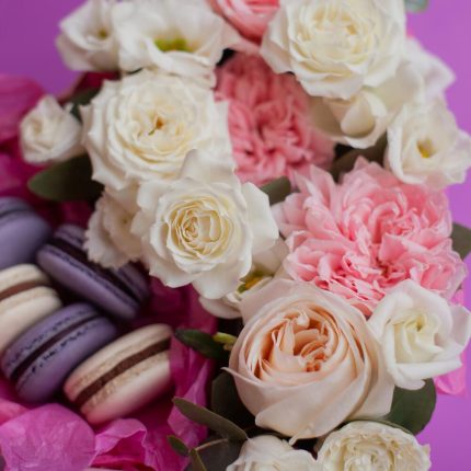 Цветочное сердце с французскими пирожными