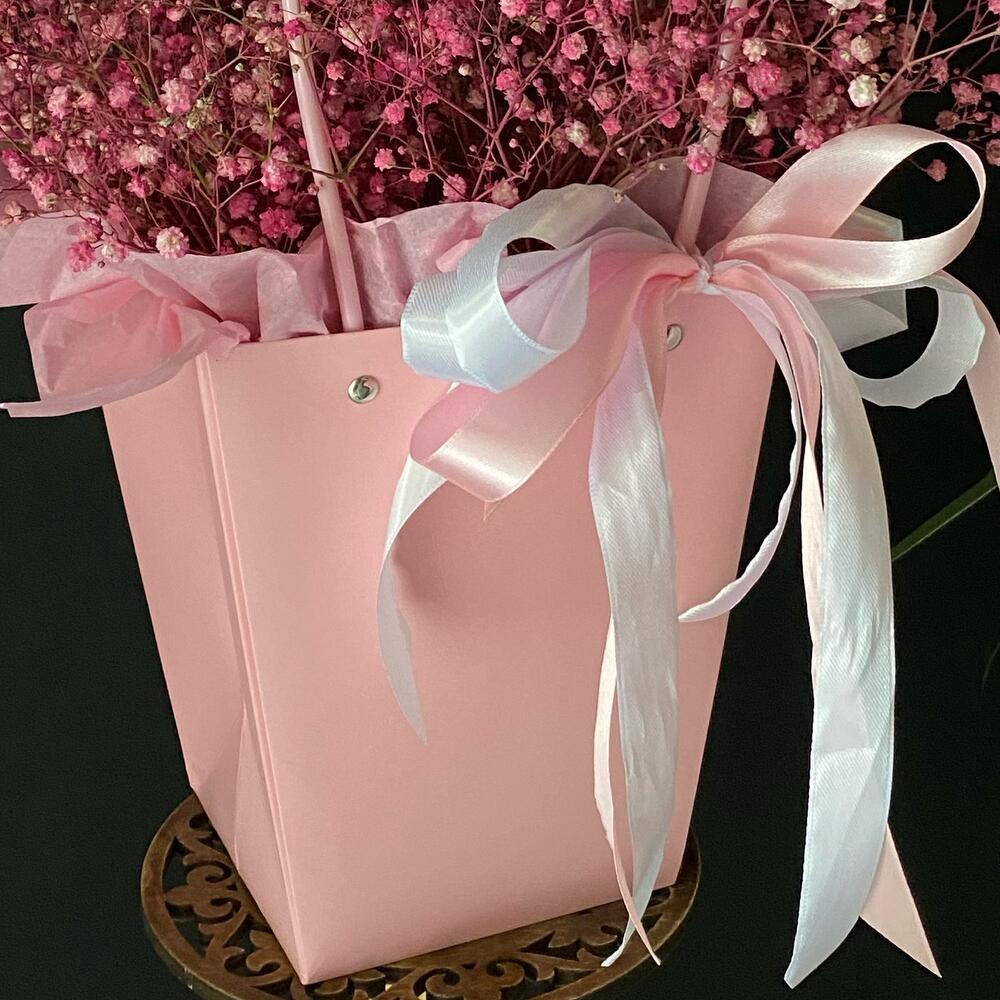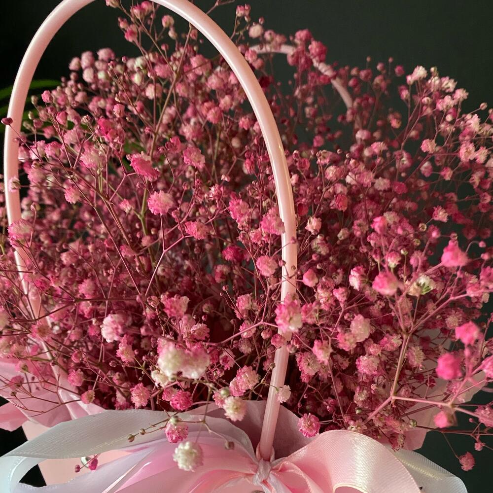 Гипсофила – 7 шт. Лента атласная – 3 шт. Тишью – 1 шт. Крафт пакет – 1 шт. Оазис флористический – 1 шт. Слюда упаковка – 3 шт.