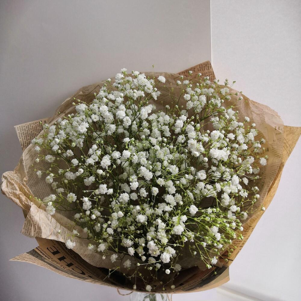 Гипсофила – 7 шт.Лента – 1 шт.Тишью – 1 шт.Крафт – 1 шт.