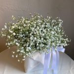 “Сиреневый туман” – композиция из гипсофилы в шляпной коробке