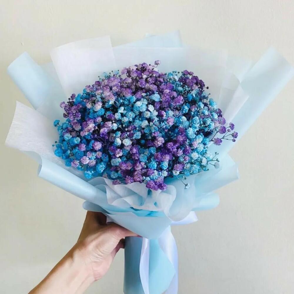Гипсофила голубая – 2 шт.Гипсофила фиолетовая – 1 шт.Пленка – 2 шт.Лента – 1 шт.