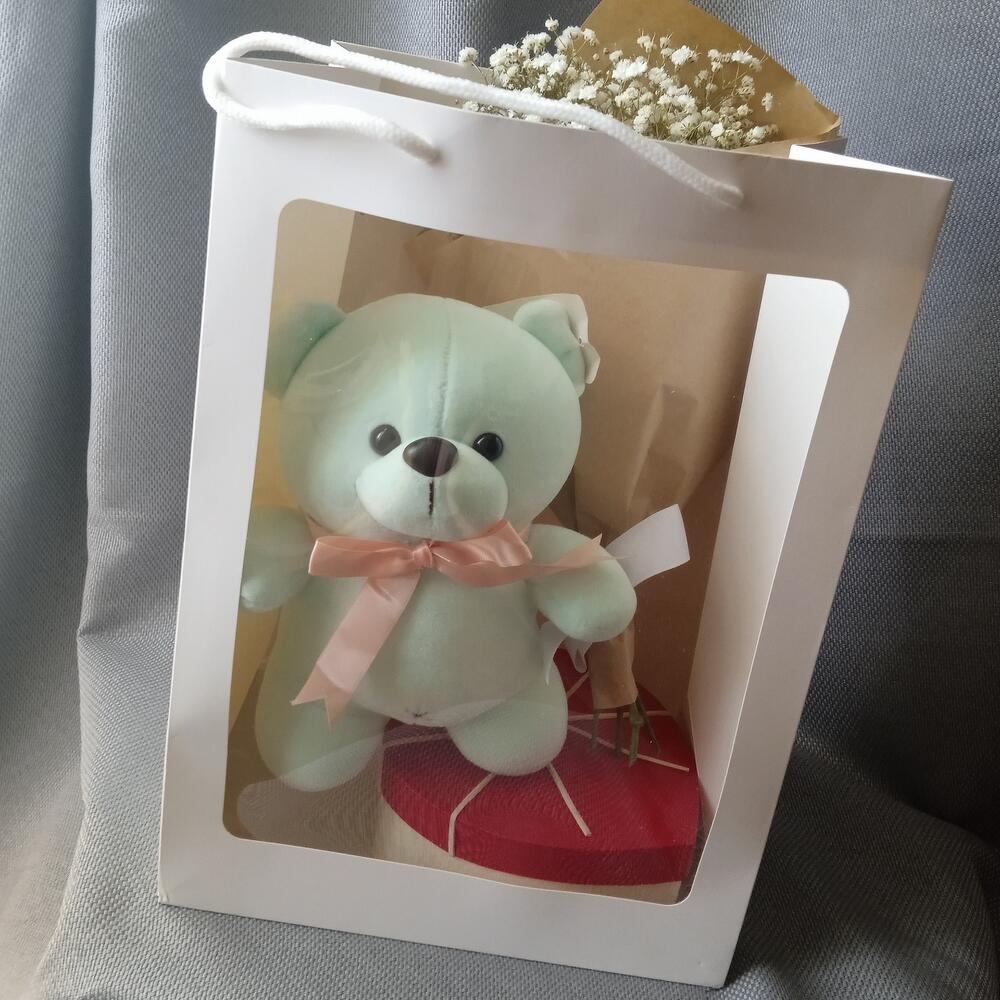 Мишка с ягодами и цветами в общей упаковке
