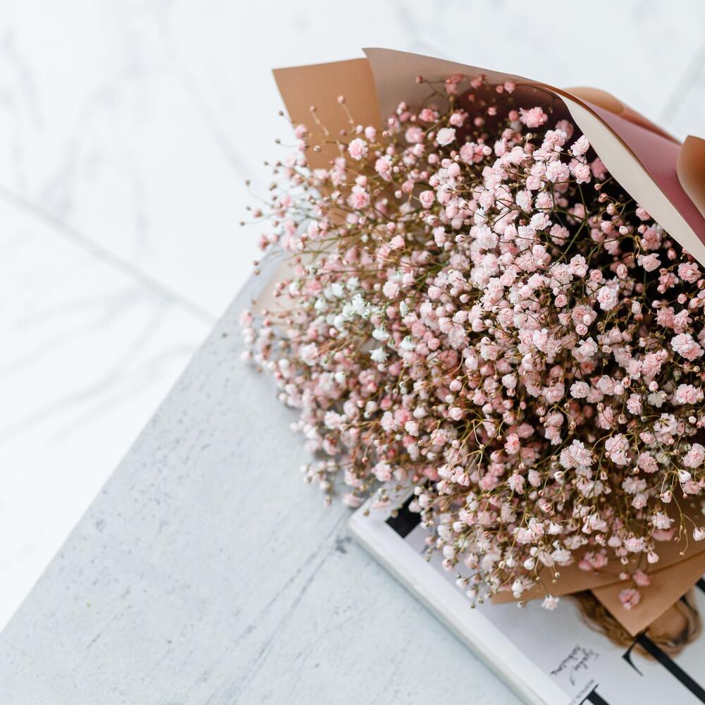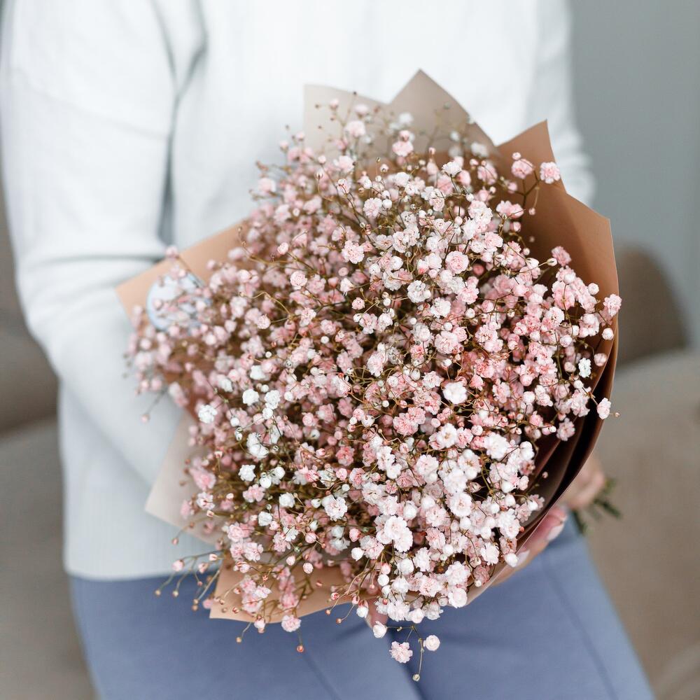Нежная пудра, букет из гипсофилы
