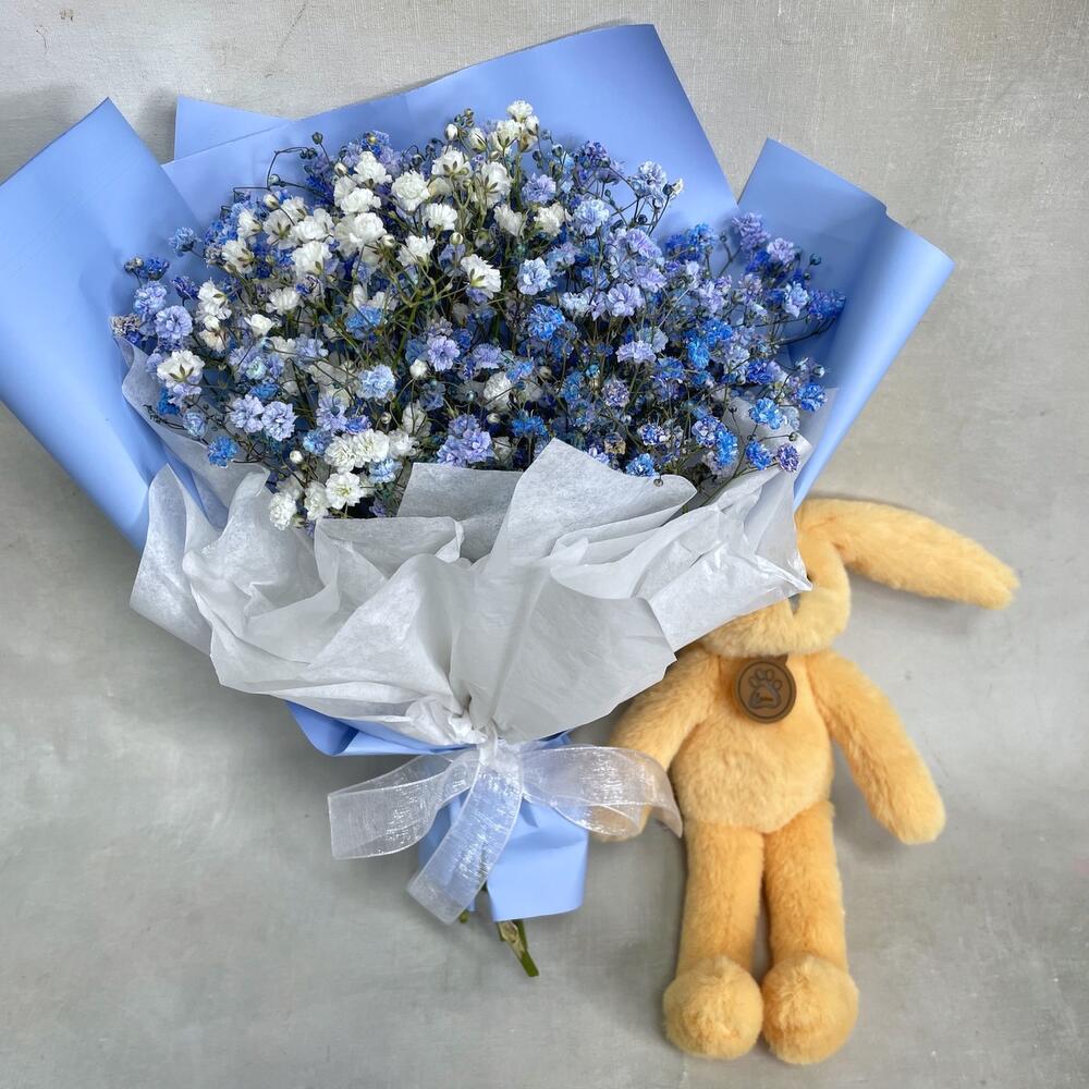 Гипсофила – 3 шт.Упаковка – 1 шт.игрушка зайчонок lapkin – 1 шт.Пакет крафт – 1 шт.