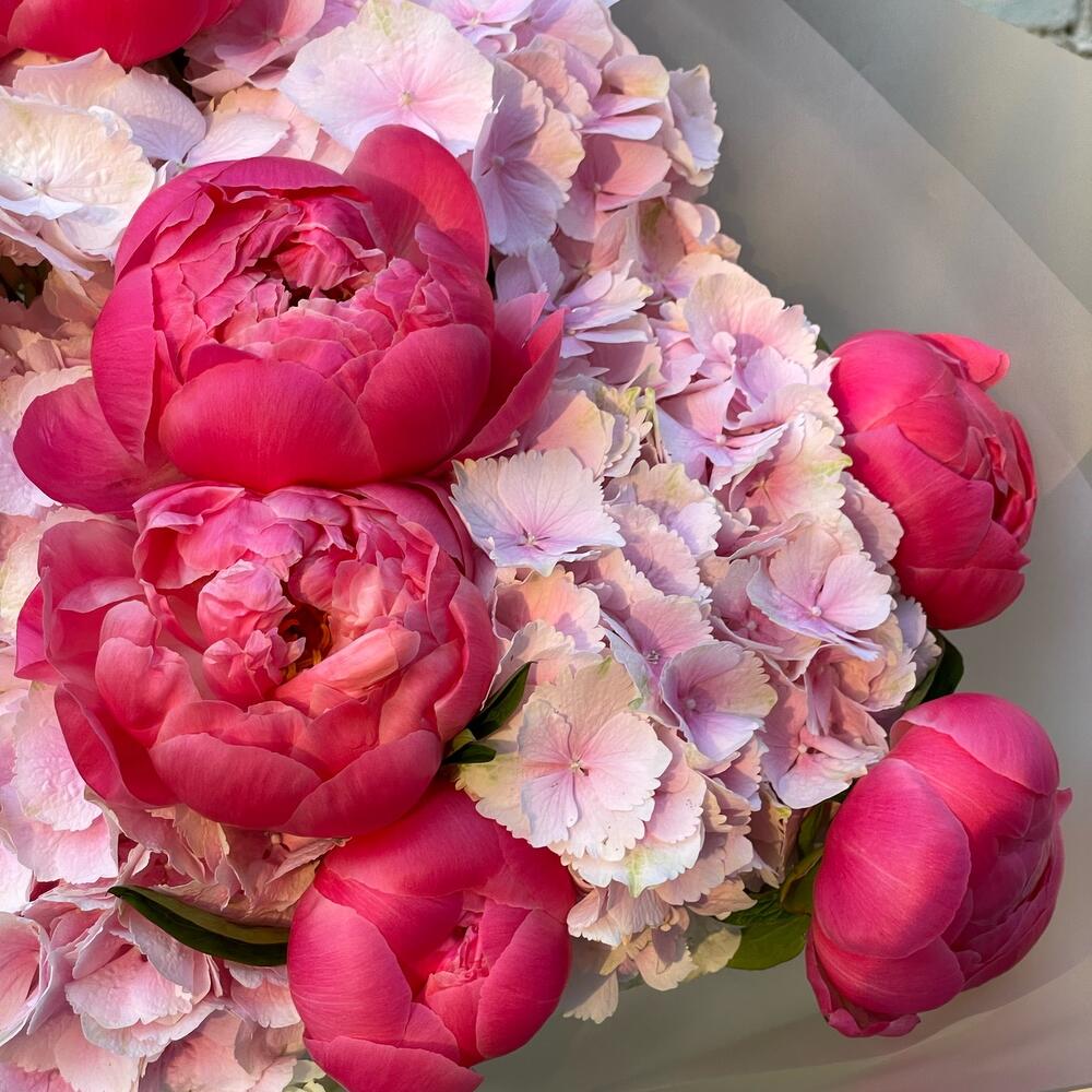 Букет из пионов и ассорти гортензий