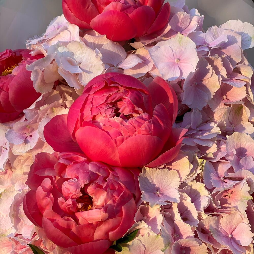 Букет из пионов и гортензий