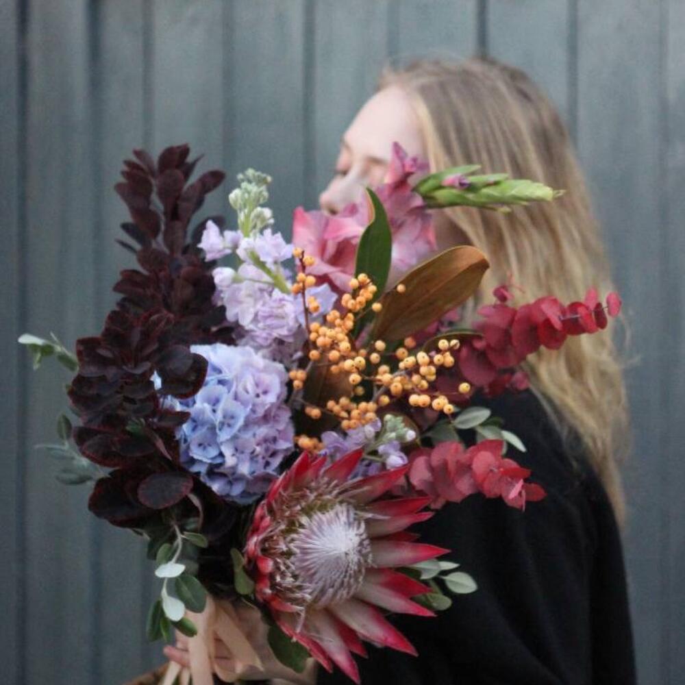 Осенний букет с протеей и ягодами