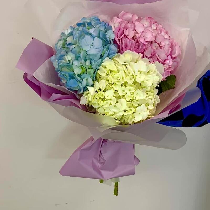 Гортензия – 3 шт.Лента атласная – 1 шт.Упаковка дизайнерская – 3 шт.