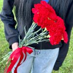 Лента атласная – 1 шт.Гвоздика красная – 11 шт.Открыточка с вашими пожеланиями – 1 шт.