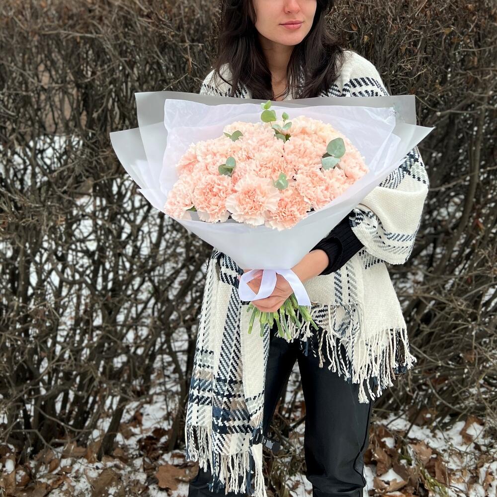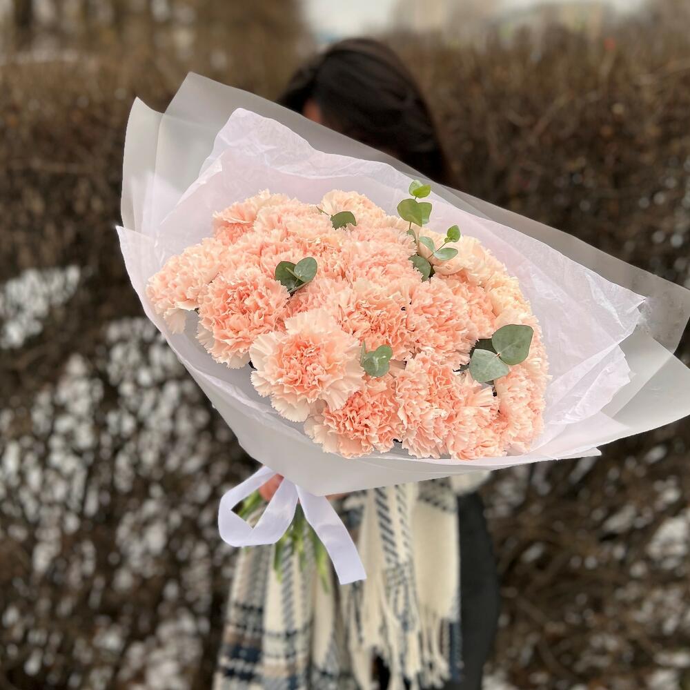 25 нежных гвоздик с эвкалиптом