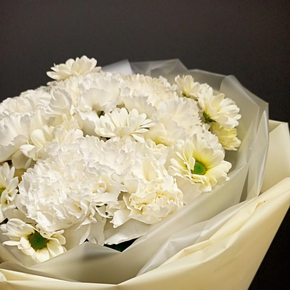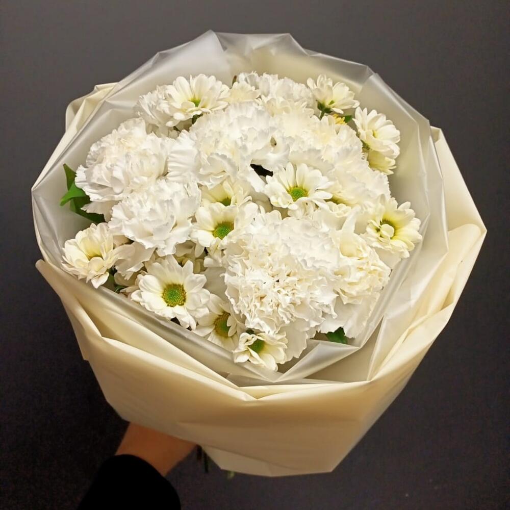 Букет из белой гвоздики и сантини