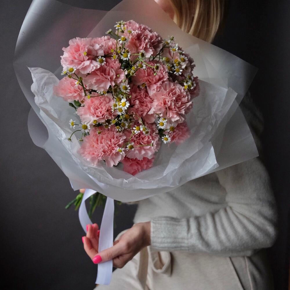 Букет из гвоздик и ромашки