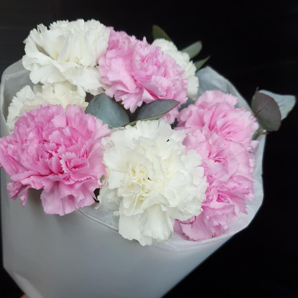 Диантус – 9 шт.Эвкалипт пучок – 1 шт.Упаковка дизайнерская – 2 шт.