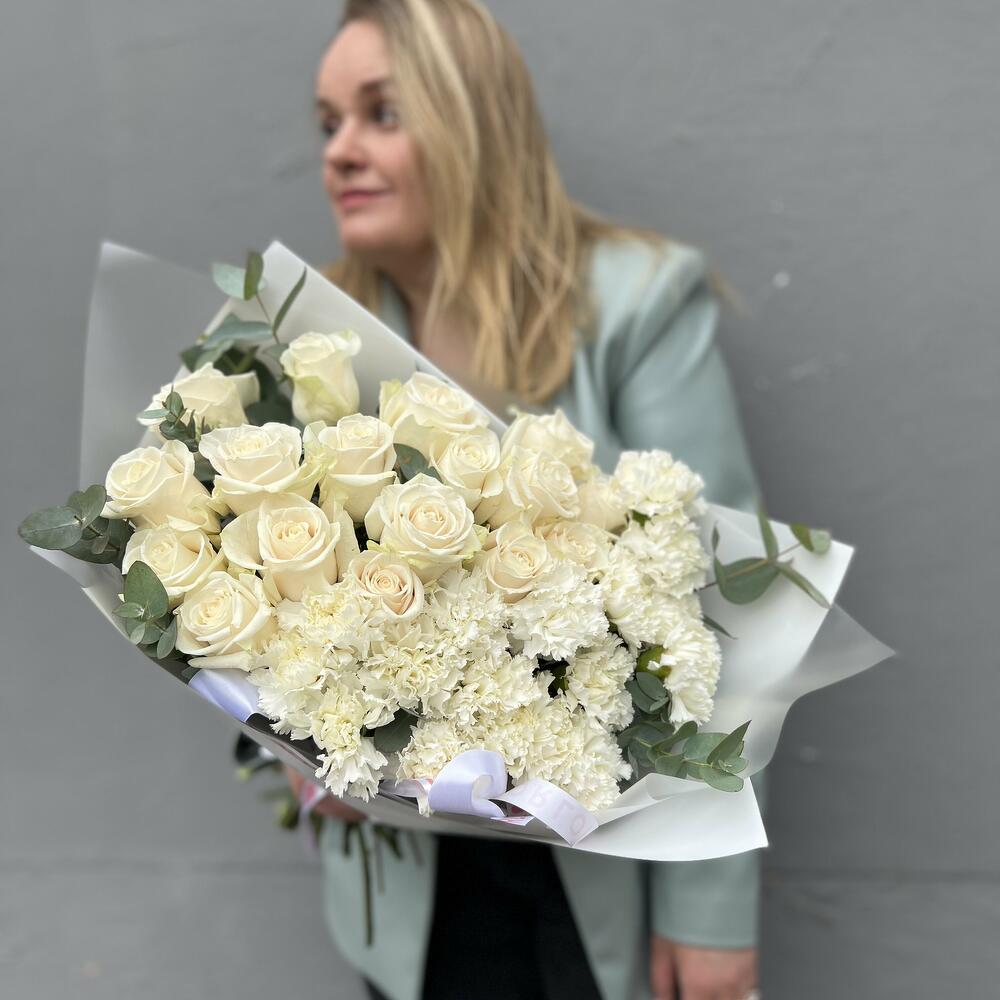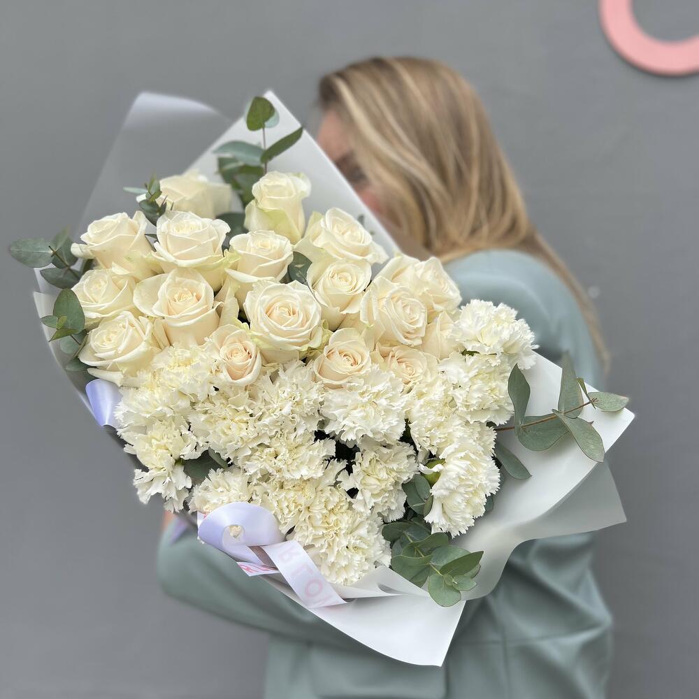 Дуо букет из роз и гвоздик