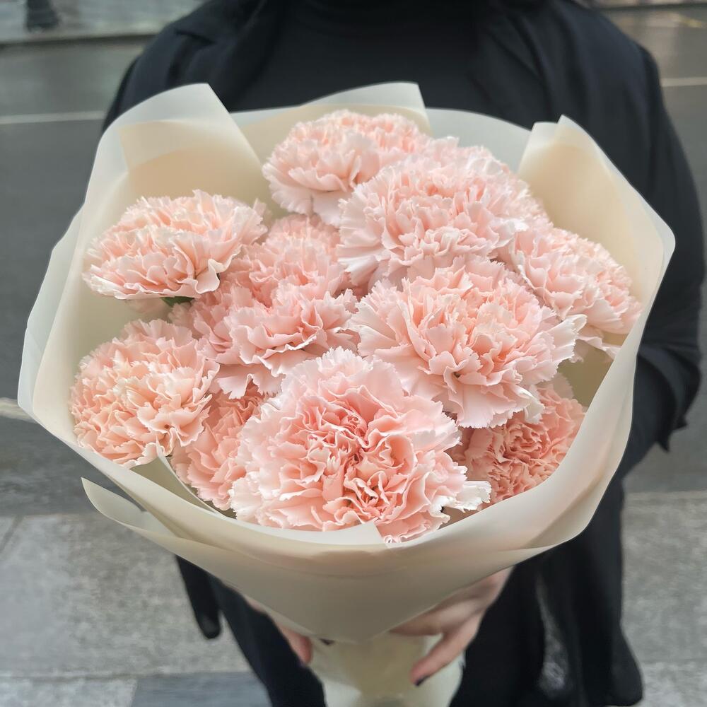 Лента атласная – 1 шт.диантус нежно-розовый – 15 шт.упаковка корейская пленка сливочная – 1 шт.