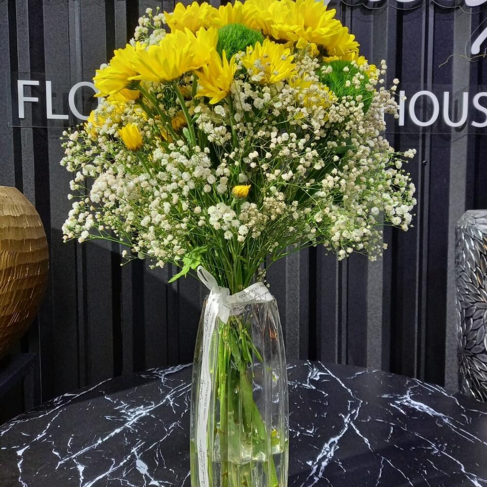 Хризантема кустовая – 6 шт. Диантус – 3 шт. Гипсофила – 5 шт.