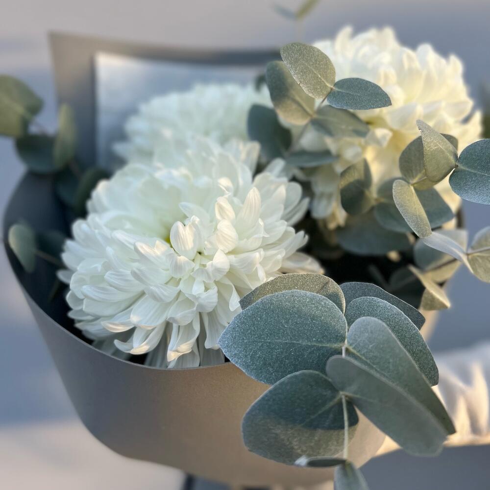 3 хризантемы с эвкалиптом