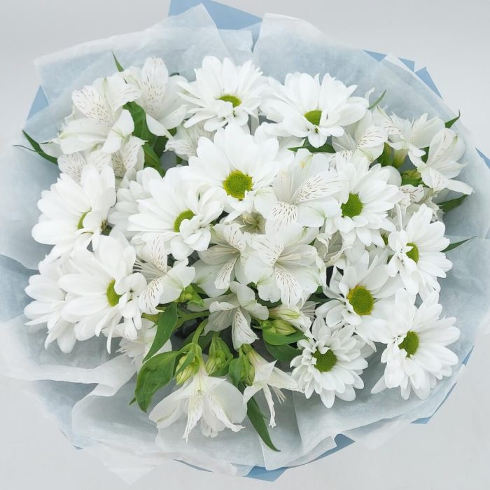 Хризантема Кустовая Бакарди белая – 3 шт. Альстромерия – 4 шт. Упаковка дизайнерская – 1 шт.