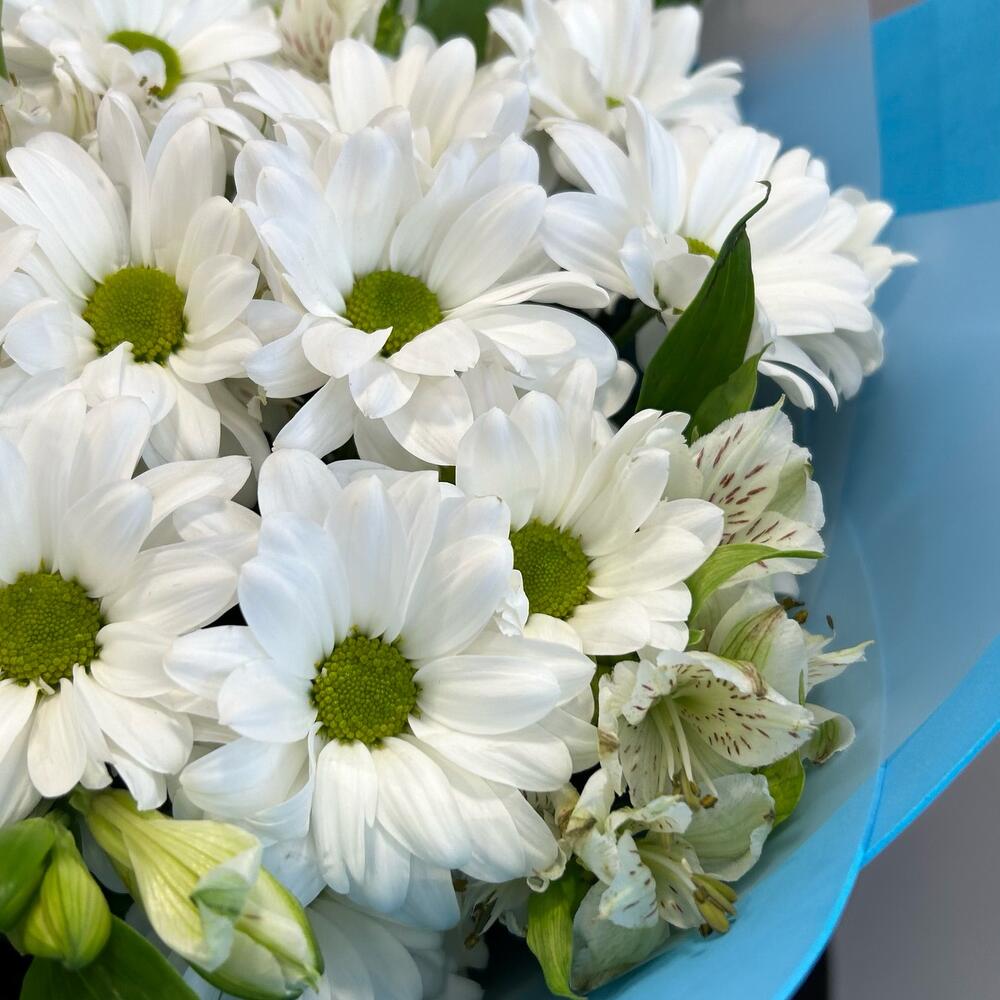 Букет из белой кустовой хризантемы и альстромерии