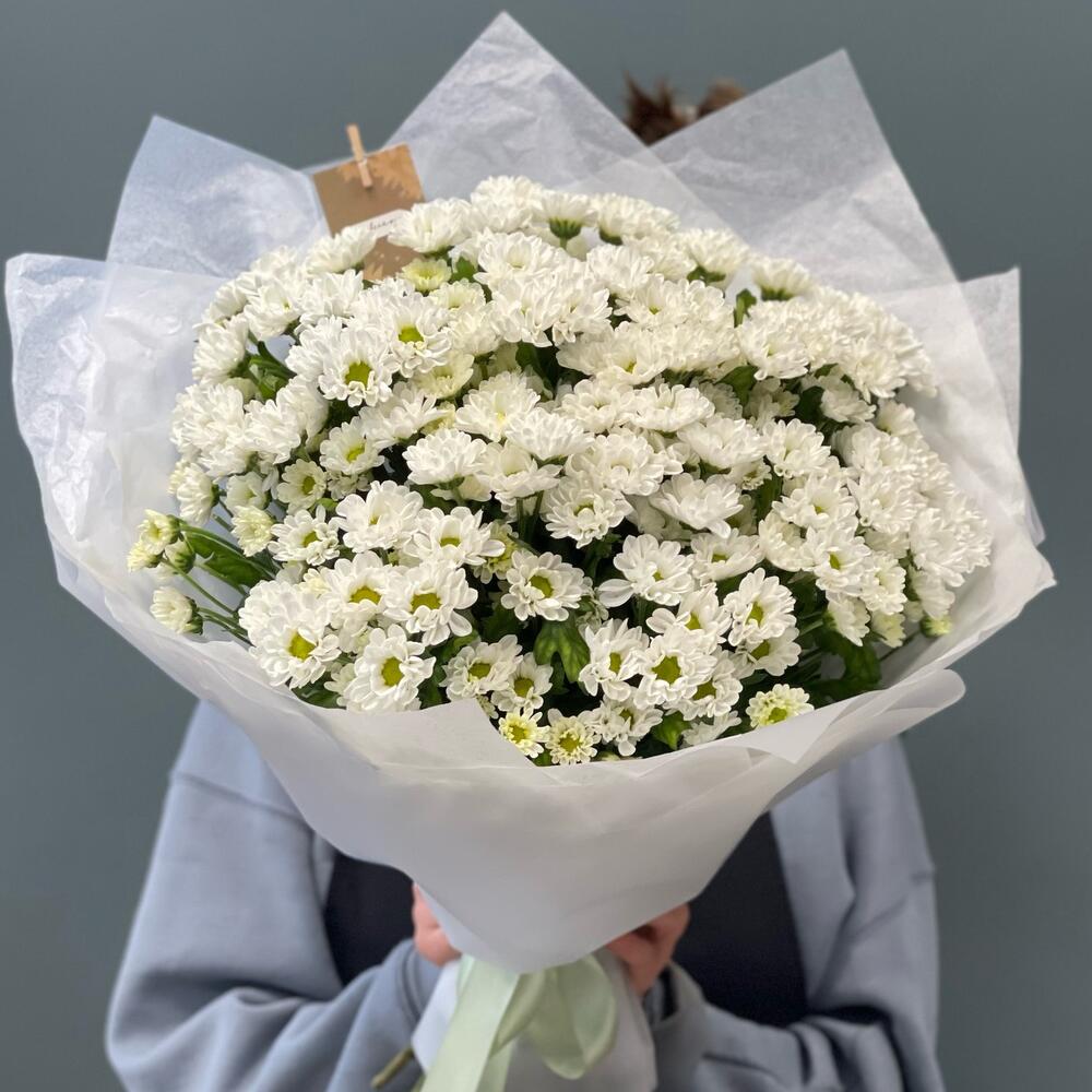 Хризантема Сантини – 15 шт.Упаковка дизайнерская – 1 шт.Открыточка с вашими пожеланиями – 1 шт.