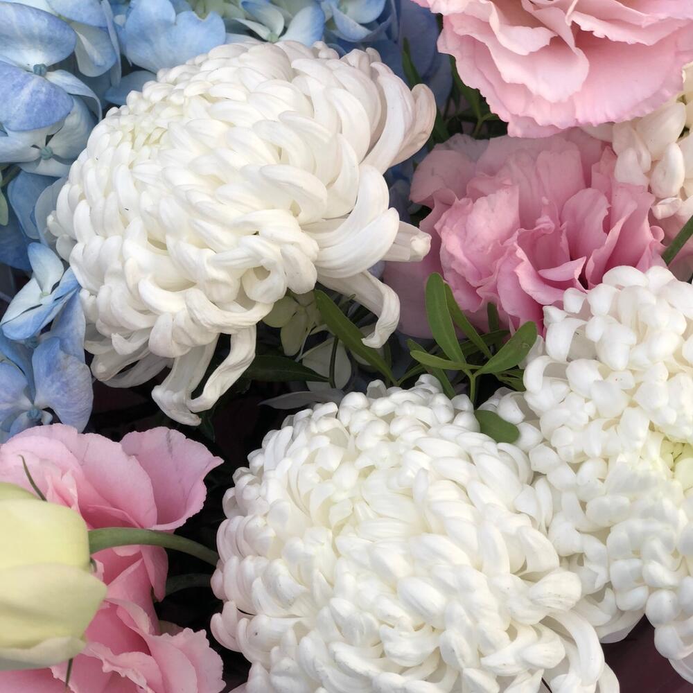 Альстромерии, Гортензии, Кустовые розы, Лизиантусы, Розы, Хризантемы