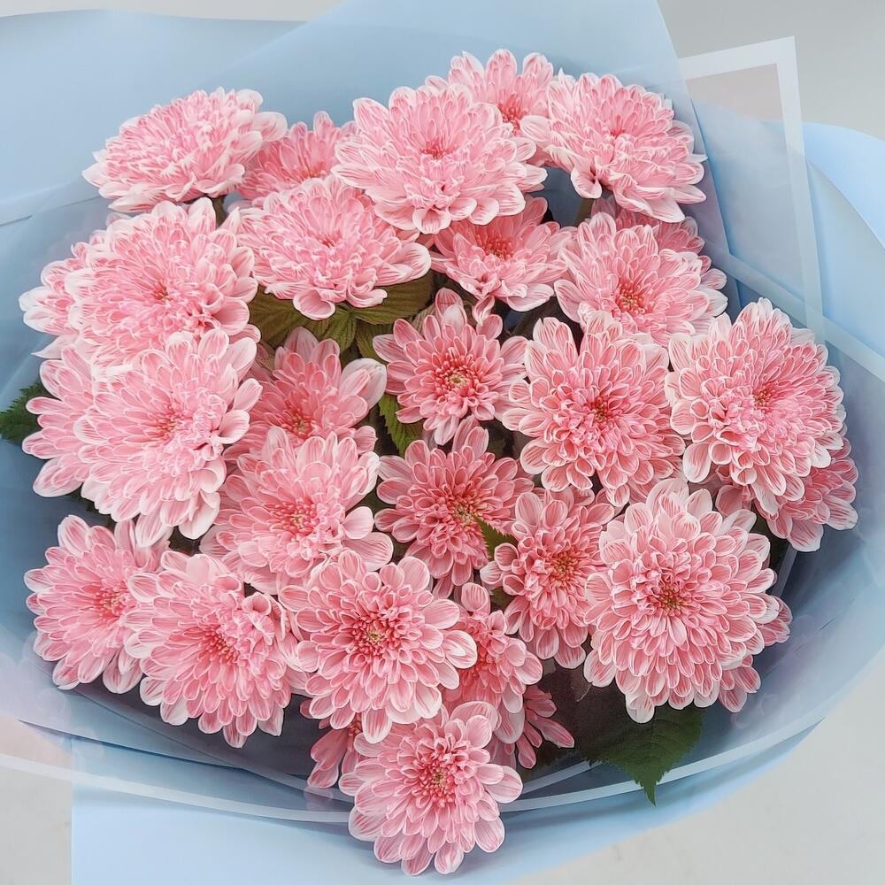 Зелень – 2 шт.Упаковка дизайнерская – 1 шт.Хризантема кустовая крашенная – 5 шт.Средство для продления жизни цветов – 1 шт.