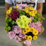 Хризантема кустовая желтая – 3 шт. Хризантема кустовая розовая – 3 шт. Хризантема зеленая кустовая – 3 шт. Хризантема кустовая бордовая – 1 шт. Хризантема кустовая лимонная – 1 шт.