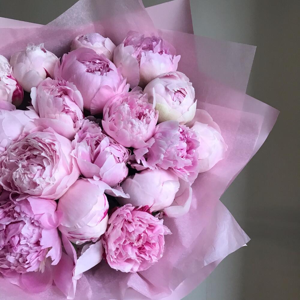 Лента – 2 шт.Упаковка дизайнерская – 4 шт.инструкция по уходу за цветами – 1 шт.пион рене хортес – 21 шт.средство для срезанных цветов – 2 шт.