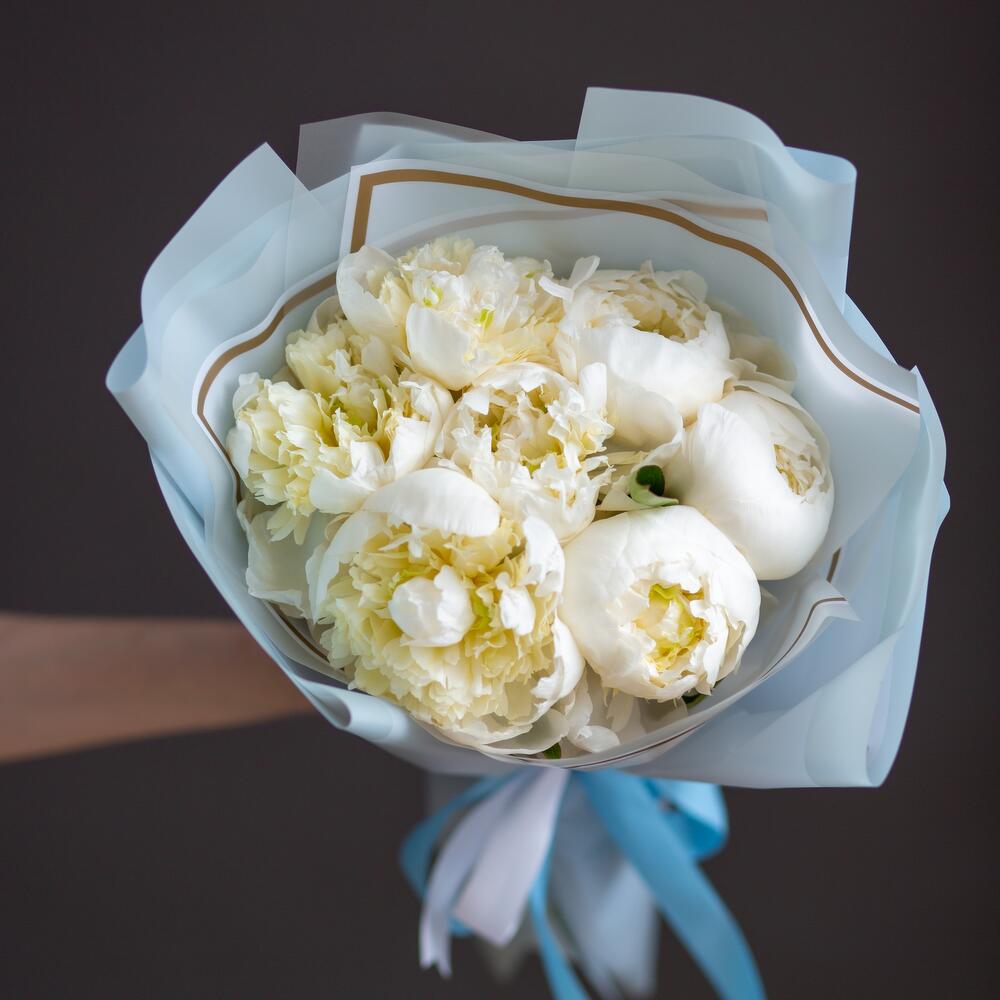 пион duchesse de nemours – 7 шт.Упаковка матовая – 2 шт.Лента атласная – 1 шт.