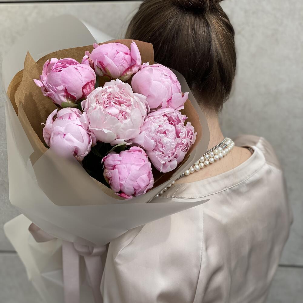 пионы сара бернард – 7 шт.Подарочная упаковка – 1 шт.средство для продления жизни срезанных цветов – 1 шт.