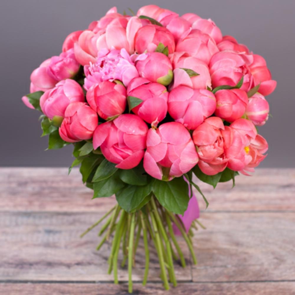 Пион Коралл Шарм (Coral Charm) – 35 шт.Лента атласная – 1 шт.