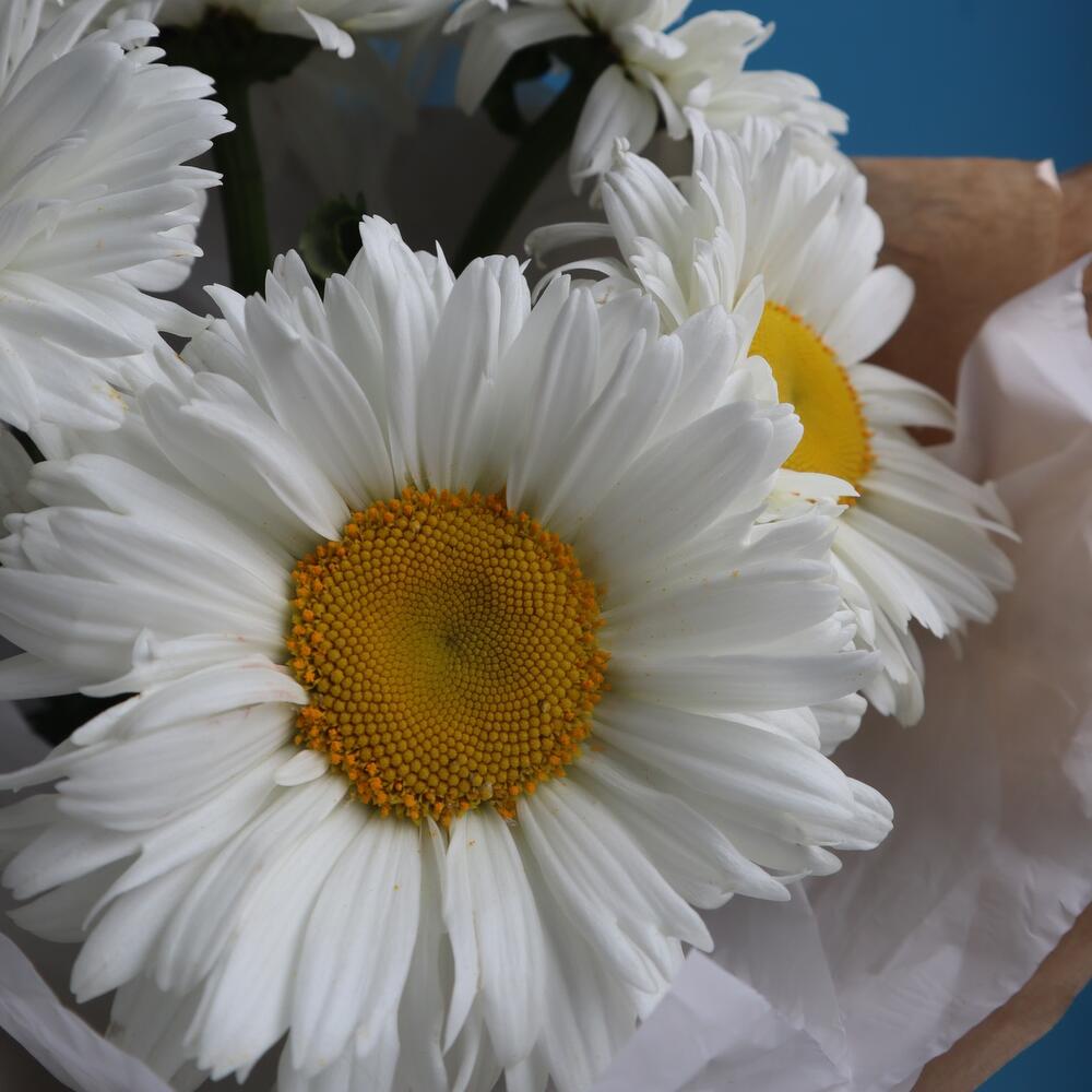 Ромашка полевая – 7 шт.Тишью белое – 2 шт.Крафт мятый – 2 шт.раыия натуральная – 1 шт.