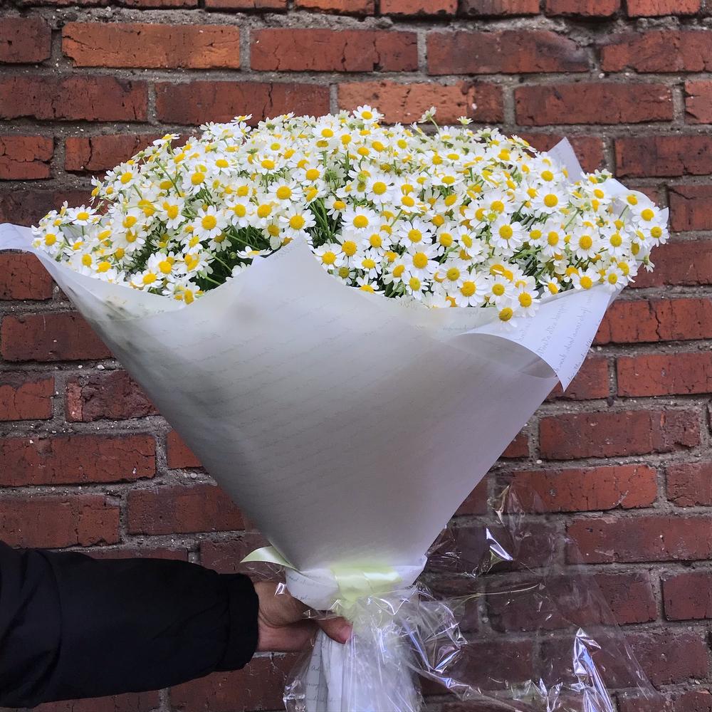 Когда хочется лета….настоящего, с запахом ромашек и солнцем. Букет поставляется на аквабоксе для лучшей транспортировки, так как ромашки очень любят воду.