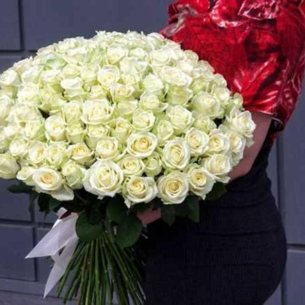 101 роза белая 70 см