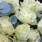 11 белых пионовидных роз с эвкалиптом