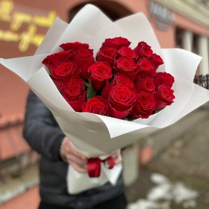 Метки: 21 роза, Красные розы, от 1000 до 2000 руб