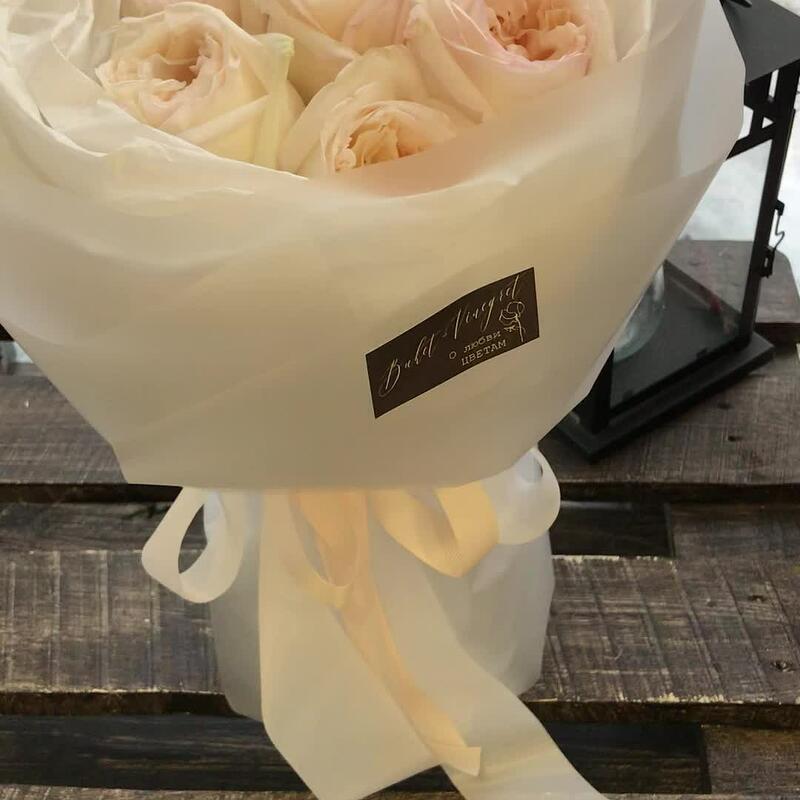 Лента атласная – 2 шт.Тишью – 3 шт.Аквабокс – 1 шт.Средство для продления жизни цветов – 1 шт.Карточка для подписи – 1 шт.Матовая упаковка – 2 шт.роза пионовидная вайт o’hara ароматная – 5 шт.чек лист по уходу за цветами – 1 шт.