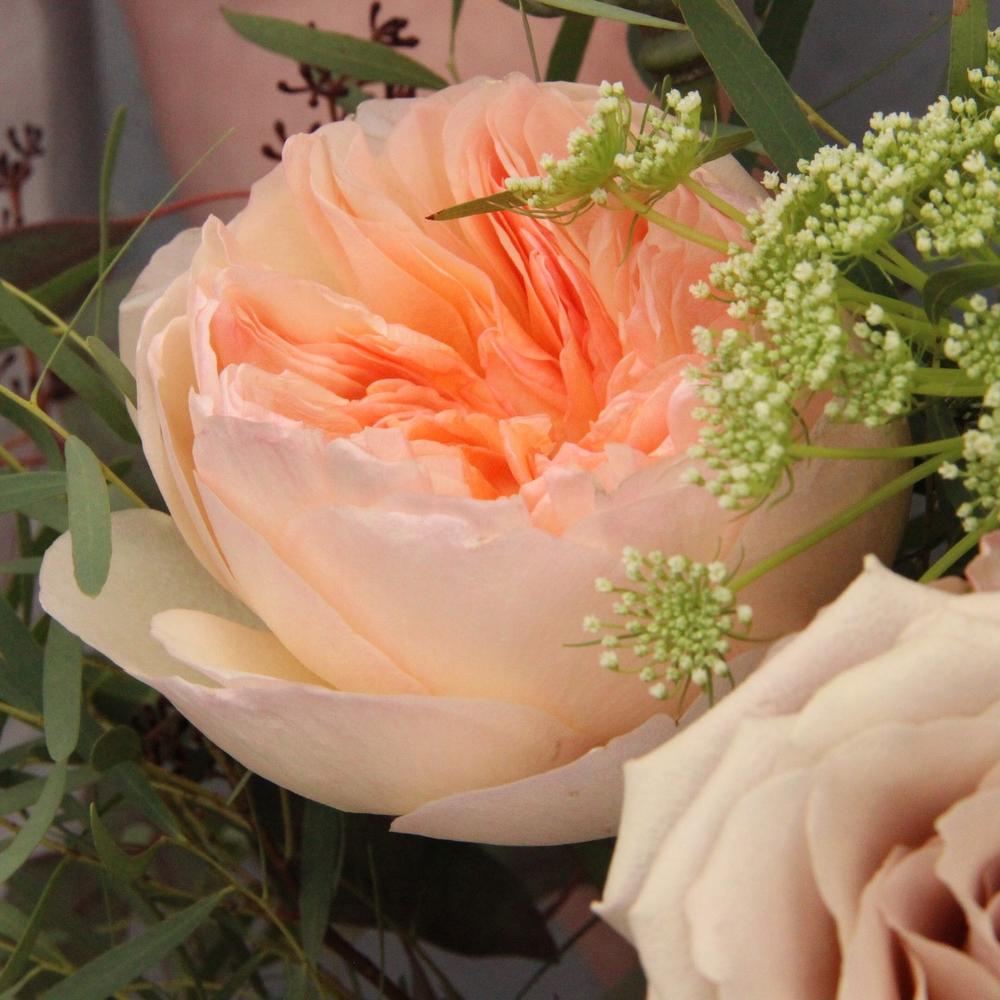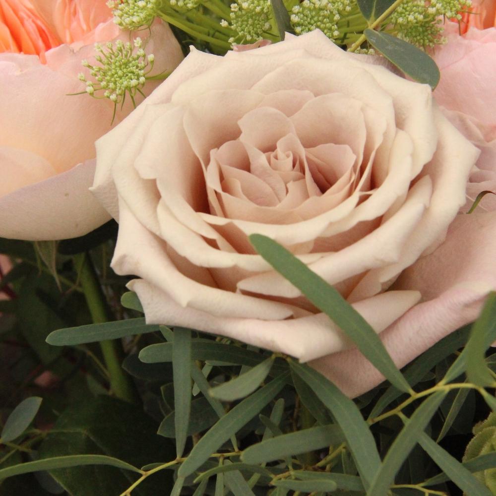 “Эвкалиптическая роскошь” гортензия и пионовидная кустовая роза