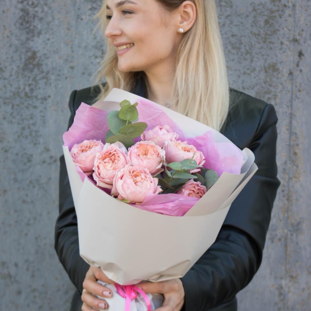 Эвкалипт – 2 шт. роза пионовидная кустовая джульетта – 3 шт.